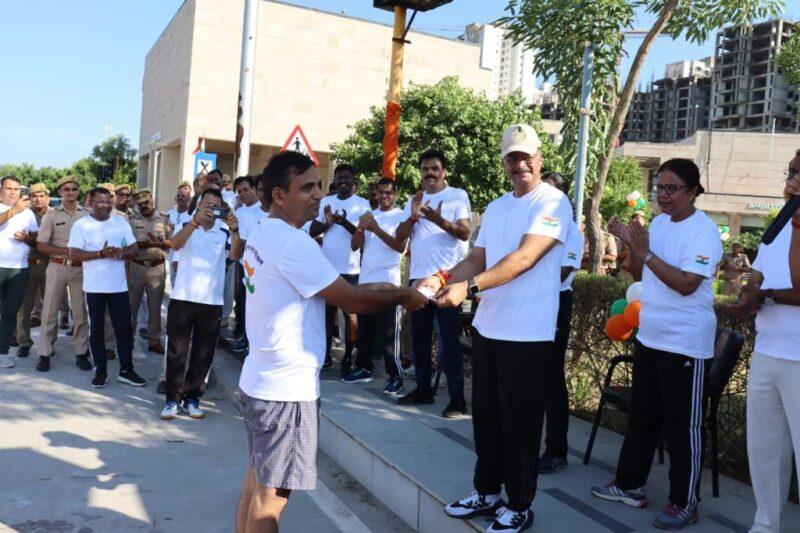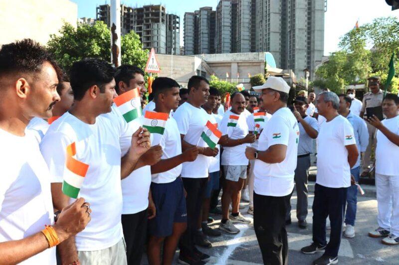 ग्रेटर नोएडा:- “आजादी का अमृत महोत्सव” कार्यक्रम के तहत शुक्रवार को पांच किलोमीटर की हॉफ मैराथन दौड़ प्रतियोगिता का आयोजन किया गया। प्रतियोगिता का शुभारम्भ पुलिस कमिश्नर आलोक सिंह द्वारा हरी झंडी दिखाकर किया गया। प्रतियोगिता में आरक्षी अन्नू कुमार को मैराथन दौड़ में प्रथम स्थान प्राप्त करने व अन्य 04 पुलिस कर्मियों को उच्च स्थान प्राप्त करने पर पुलिस कमिश्नर गौतमबुद्धनगर द्वारा नकद पुरस्कार से सम्मानित किया गया। इस आयोजन में पुलिस कमिश्नर गौतमबुद्धनगर आलोक सिंह,ज्वाइंट पुलिस कमिश्नर लव कुमार, अपर पुलिस आयुक्त मुख्यालय भारती सिंह, सभी डीसीपी एवं अन्य वरिष्ठ अधिकारीगण तथा पुलिस के जवानों ने बढ़ चढ़ कर प्रतिभाग किया।