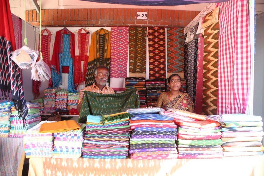शकी लक्ष्मी द्वारा संचालित हरिथा स्वयं सहायता समूह ने इक्का कॉटन साड़ी, बेडशीट तथा सूट के कपड़े का स्टॉल लगाया है।
