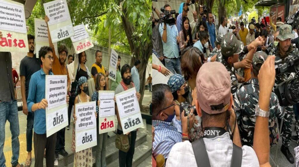 आइसा के प्रदर्शन करने वाले छात्रों के हाथ में तख्तियां थी जिसमें लिखा था कि ठेका पट्टी पर नहीं सम्मानजनक रोजगार की गारंटी करो और सेना में खाली सभी पदों पर अविलंब स्थाई बहाली प्रक्रिया शुरु करो । मोदी सरकार युवाओं के भविष्य के साथ मत खेलो और अग्निपथ स्कीम को वापस लो।