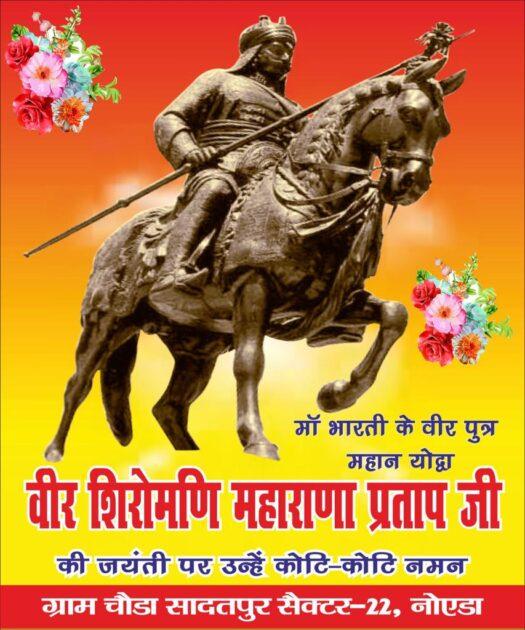 नोएडा :- आज महाराणा प्रताप जयंती के अवसर पर सेक्टर 22 चौड़ा गांव में एक भव्य कार्यक्रम का आयोजन किया गया। जहां बड़े ही धूमधाम से महाराणा प्रताप जयंती मनाई गई गांव के लोगों ने पुष्प और माला चढ़ाकर महाराणा प्रताप को याद किया साथ ही इस अवसर पर भंडारा कर प्रसाद वितरण भी किया गया
