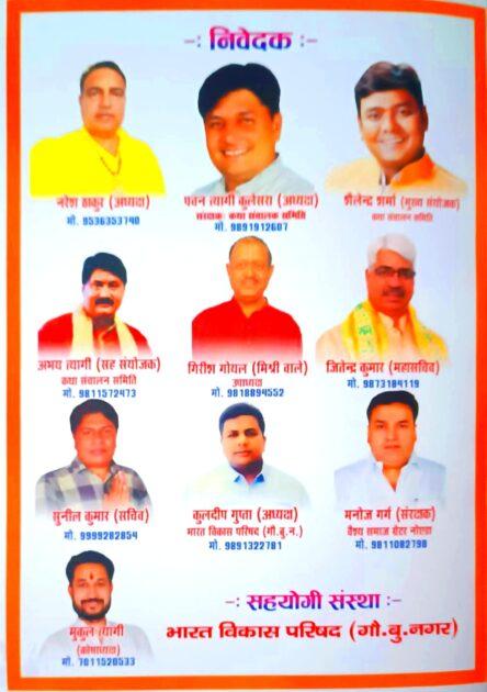अभय त्यागी (सह संयोजक) कथा संचालन समिति , गिरीश गोयल (मिश्री वाले) उपाध्यक्ष ,जितेंद्र कुमार (महासचिव ) सुनील कुमार (सचिव),कुलदीप गुप्ता (अध्यक्ष) भारत विकास परिषद,मनोज गर्ग (संरक्षक ) वैश्य समाज ग्रेटर नोएडा, मुकुल त्यागी (कोषाध्यक्ष)