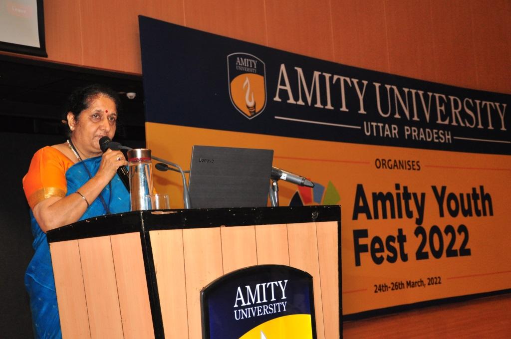 एमिटी विश्वविद्यालय उत्तरप्रदेश की वाइस चांसलर डा बलविंदर शुक्ला ने अतिथियों का स्वागत करते हुए कहा कि महमारी के उपरांत सुरक्षा और स्वास्थय रक्षा के लिए इस बार एमिटी यूथ फेस्ट 2022 का आयोजन हाईब्रिड मोड में किया जा रहा है जिसमें छात्र पूरी शिद्दत से हिस्सा ले रहे है। उन्होनें छात्रों से कहा कि एमिटी यूथ फेस्ट केवल प्रतियोगिता नही है बल्की मित्रता के रिश्ते को मजबूत करने और नये मित्र बनाने का अवसर है। एमिटी मे हम छात्रों को अकादमिक, सांस्कृतिक, शोध, उद्यमिता आदि सभी के अवसर प्रदान करते है।
