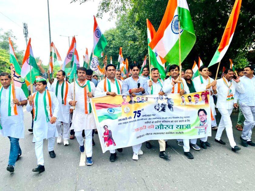 नोएडा महानगर कांग्रेस अध्यक्ष रामकुमार तंवर के नेतृत्व में आजादी की 75 वी वर्षगांठ पर शहीदों के सर्वोच्च बलिदान को याद करने के लिए नोएडा में आजादी की गौरव यात्रा निकाली गई। पदयात्रा नोएडा सेक्टर 57 चौकी चौराहा से शुरू होकर सेक्टर 12,22 मैन रोड से अडोब चोराहा से भारत मॉल , डीएम आवास, अट्टा पीर चौक, अट्टा मार्केट से सेक्टर 29 गंगा शोपिंग कॉम्प्लेक्स से सेक्टर 37 बाबा भीम राव अम्बेडकर पार्क में बाबा साहब की मूर्ति पर माल्यार्पण कर यात्रा का समापन हुआ।