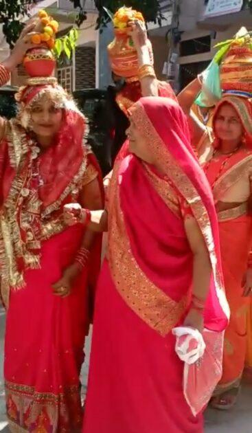 नोएडा वासियों एवं ग्रामीणों ने काफी तादाद मे एकत्रित होकर निकाली कलश यात्रा