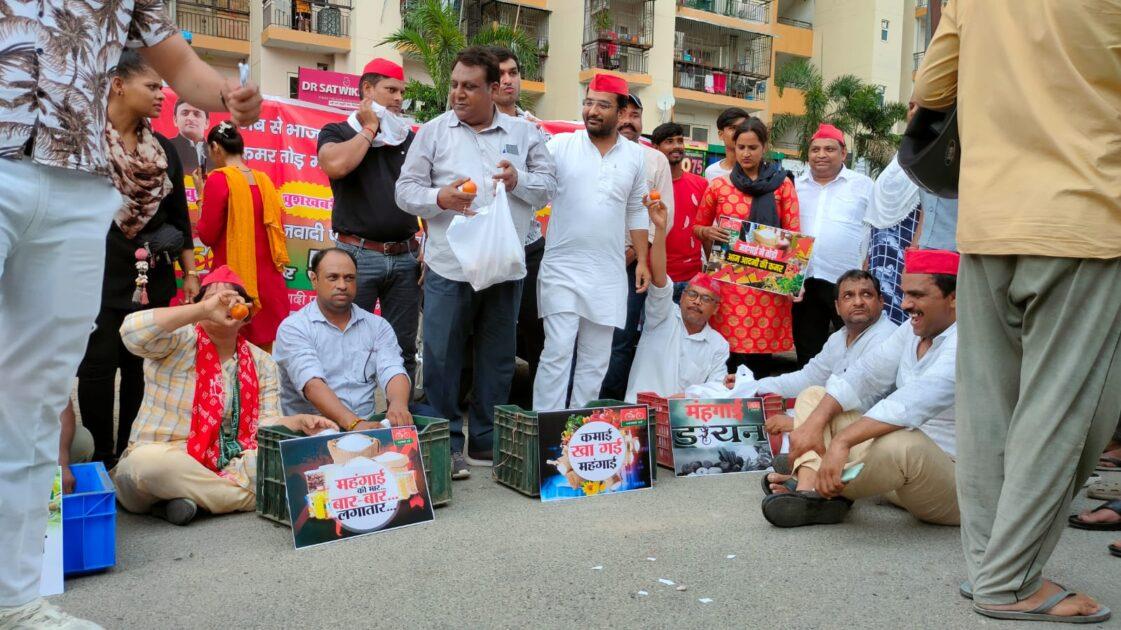 नोएडा :- सपा नोएडा महानगर इकाई ने नॉर्थ आई चौराहा सेक्टर 75 में देश व प्रदेश में बढ़ती महंगाई के खिलाफ जोरदार प्रदर्शन किया सपा नोएडा महानगर इकाई के नेताओं एवं कार्यकर्ताओं ने सेक्टर 75 के मार्केट में खड़े होकर लोगों को ₹50 किलों में टमाटर बेचकर सांकेतिक रूप से प्रदर्शन के साथ-साथ सरकार को जगाने का काम किया ,महानगर अध्यक्ष डॉक्टर आश्रय गुप्ता ने कहा कि भाजपा सरकार में जमाखोरों और पूंजी पतियों का बोलबाला है किसानों से सस्ते दाम में टमाटर खरीद कर स्टॉक किया जा रहा है और महंगे दामों में जनता को बेच रहे हैं कीमत बढ़ने के बाद सब्जी से टमाटर गायब सा हो गया है पहले रसोई गैस, अरहर दाल और तेल की कीमतों में बढ़ोतरी की गई अब सब्जियों के दाम बढ़ाए जा रहे हैं।