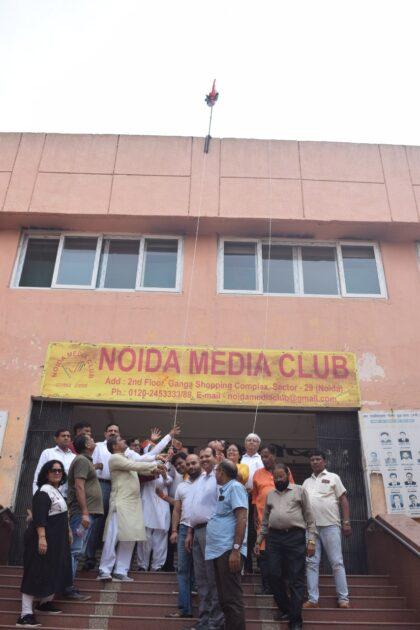नोएडा:- आज़ादी की 75 वर्ष पूरे होने पर सेक्टर 29 के गंगा शॉपिंग कॉम्प्लेक्स स्थित नोएडा मीडिया क्लब में क्लब के पदाधिकारियों व सदस्यों ने तिरंगा फहराया। इस अवसर पर सभी ने एक दूसरे को स्वतंत्रता दिवस की बधाई दी।